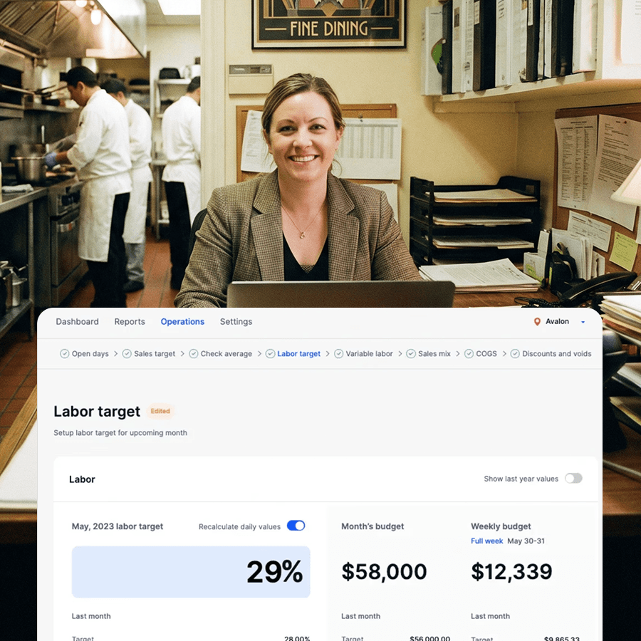 Set clear targets and budgets for sales, labour, covers, checks, and COGS that your entire team can track in real time.